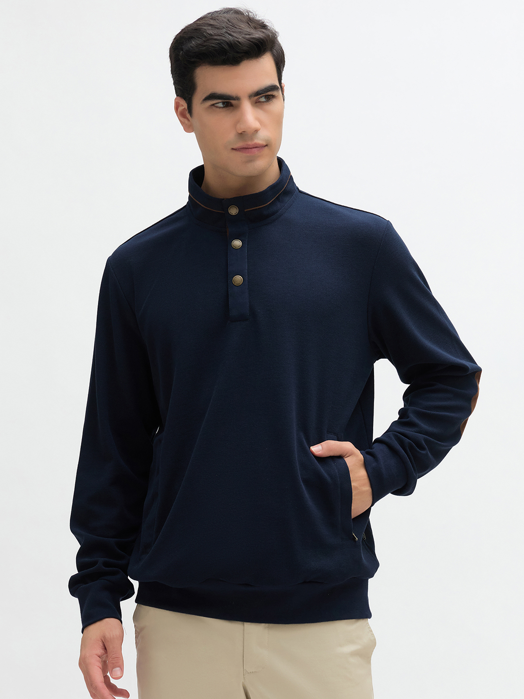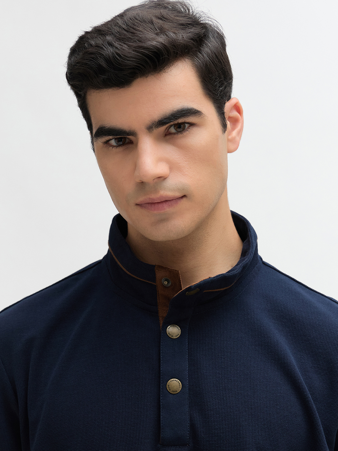 he Waffle Knit Sweatshirt with Placket is a stylish and cozy addition to your wardrobe, perfect for layering or wearing solo. This sweatshirt features a unique waffle knit texture that adds visual interest and warmth without bulk.