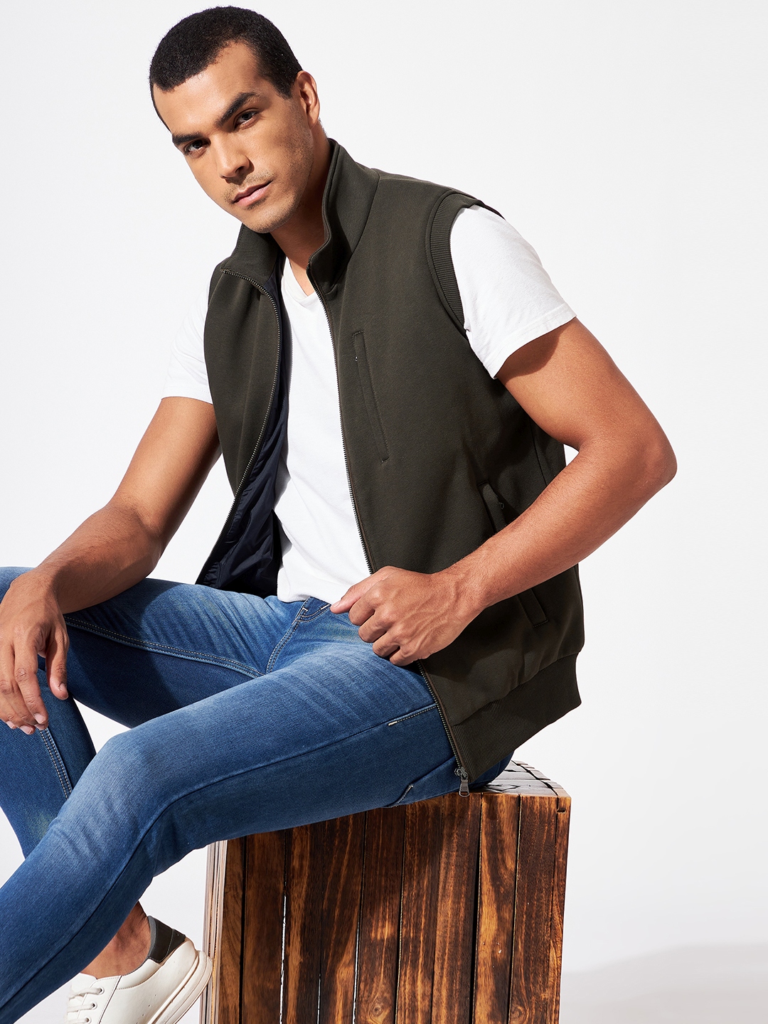 • High neck with full front zip.